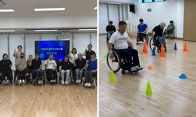 천안반다비체육센터의 가장 큰 특징은 전문적 특정 종목이 아닌 비종목형 재활, 생활체육 중심의 프로그램을 우선한다는 점이다. 이용자들이 초기 재활부터 시작해 운동하는 습관을 갖추고, 기초 체육, 생활체육을 거쳐 전문 체육으로 이어지는 단계별 구조를 구축했다.임동주 팀장은 “종목 중심으로 프로그램을 구성하면 전문성은 살릴 수 있지만, 이용자 입장에서는 부담스러울 수 있다”고 설명했다. 휠체어농구 국가대표 선수 출신인 그는 익숙한 ‘전문 체육’을 이용자들의 일상에 도움이 되는 방향으로 녹여내는 프로그램을 고민했다고 전했다.이들을 위해 기획한 프로그램이 바로 ‘휠체어 스킬 스쿨’이다. 실제로 이곳을 찾는 사람들 중에는 운동 경험이 전혀 없거나, 휠체어 사용법조차 익히지 못한 경우도 적지 않다. ‘휠체어 스킬 스쿨’을 이수하면 기초 주행부터 턱 넘기, 경사로 오르내리기 등 실생활에서 필요한 기술을 단계적으로 배울 수 있다. 그뿐 아니라 휠체어농구나 휠체어럭비, 휠체어댄스스포츠 같은 생활체육이나 전문 체육에 대한 심리적 장벽도 낮아진다.이용 접근성도 뛰어나다. 장애 유형에 관계없이 헬스, 요가, 댄스스포츠 등 60여 개 프로그램이 대부분 무료로 제공되며, 모든 수업에는 생활체육지도자가 상주해 개인별 맞춤 지도를 제공한다. 수중운동실만 1회 1,500원의 합리적 비용이 책정되어 있다. 이는 천안시와 천안시장애인체육회의 지원 덕분이다. 수익보다는 ‘누구나 운동할 수 있는 환경’ 만들기가 우선이다.
