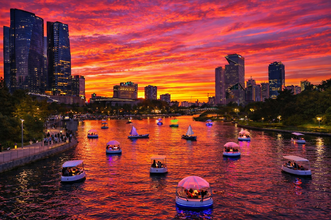 낮의 밝은 풍경과 밤의 조용한 분위기가 자연스럽게 이어지는 그 짧은 시간, 공원은 가장 아름다운 색으로 물듭니다. 물 위에 비친 하늘을 바라보며 걷다 보면, 특별한 계획이 없어도 충분히 여행이 완성됩니다.