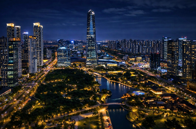 인천 송도의 늦은 오후는 조금 특별합니다. 유리처럼 반짝이는 빌딩 사이로 노을빛이 천천히 번지고, 그 아래 잔잔하게 흐르는 물길이 시선을 붙잡습니다. 바쁜 도시 한가운데 있지만, 이곳에 들어서는 순간 공기의 결이 달라지는 걸 느끼게 됩니다.