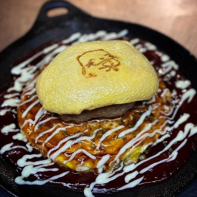 대표 메뉴는 오믈렛 오코노미야키다. 불판 위에 밀전병을 올리고, 아삭한 양배추와 숙주, 쪽파, 삼겹살을 층층이 쌓는다. 그 위에 계란으로 마무리한 오믈렛은 외형도 아름답고 맛도 뛰어나다. 지글지글 익어가는 소리와 함께 퍼지는 고소한 향은 식욕을 자극하기에 충분하다.