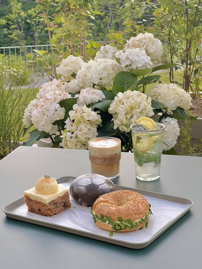 의암호를 배경으로 천국의 계단, 천국의 계단, 그리고 <스즈메의 문단속> 등 인생 사진을 건질 수 있는 포토존 카페. 특히 지하 1층 테라스는 시원한 강바람과 탁 트인 호수의 풍경을 앞에 두고 풍경을 감상하는 한편, 다양한 포토존을 즐기는 공간으로 인기다. 메인 메뉴는 직접 로스팅한 커피로 만든 아인슈페너와 사과 청을 베이스로 한 춘천호숫가 등의 스페셜 블렌딩 티가 인기다. 몽블랑, 소금빵 등 베이커리 메뉴도 만날 수 있다.