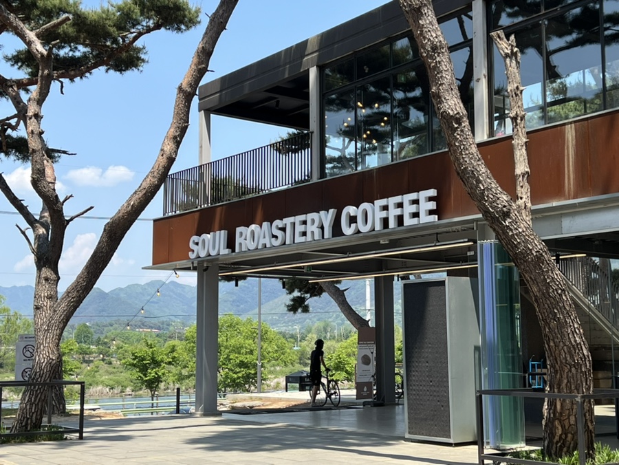 커피 너머 소나무 향이 느껴질 것 같은 솔숲 뷰 카페. 소나무 숲을 둘러싸고 총 열 개의 크고 작은 건물들 모두 소울로스터리다. 소나무를 비롯한 자연 뷰를 해치지 않기 위해 만들어진 배려다. 각기 떨어져 있는 공간에서는 시원한 소양강변과 소나무 숲 풍경을 골라 볼 수 있다. 다양한 뷰를 배경으로 사진을 찍기에도 좋다. 날이 많이 덥지 않다면 소나무 숲 아래 놓인 테이블에서도 커피를 마시는 건 어떨까. 이곳의 시그니처 메뉴는 초당 옥수수와 에스프레소를 더한 옥수수 커피와 플레인, 시나몬 크로플이다.