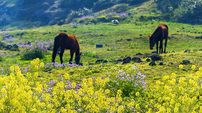 완만한 언덕 지형을 따라 꽃밭이 이어지기 때문에 산책을 하면서 자연스럽게 풍경을 감상할 수 있다는 점도 특징이다. 바다를 배경으로 펼쳐지는 꽃밭은 제주 봄 여행을 상징하는 장면 가운데 하나로 여겨진다.