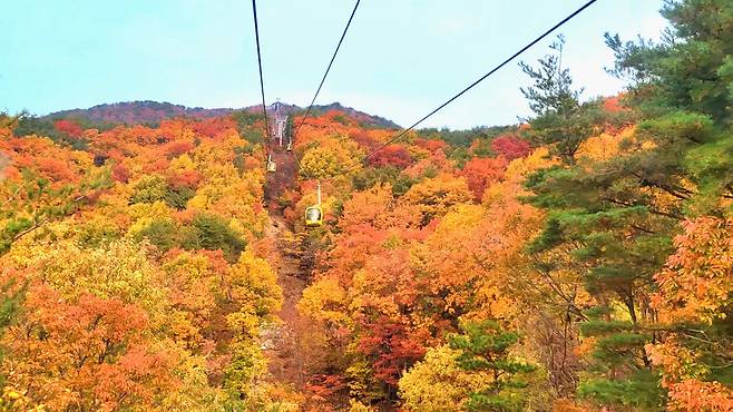 정상에서는 단풍 융단을 발아래 두고 즐기는 파노라마 뷰와 전망대·레스토랑에서의 여유가 매력적이다.