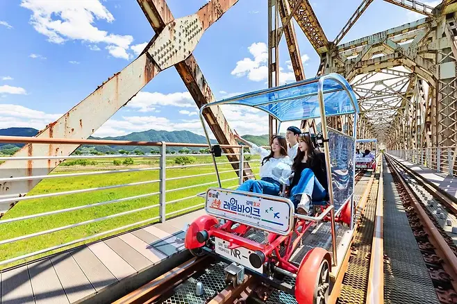 유채꽃 축제장과 이어지는 낙동강레일파크는 하나의 일석이조 코스로 인기다. 철교 위를 달리는 레일바이크가 명물로 꼽히며, 이곳에서는 탁 트인 낙동강 풍경과 석양을 동시에 볼 수 있어 봄을 색다르게 즐길 수 있다.
