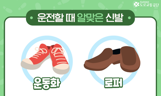 추천: 드라이빙 슈즈, 스니커즈(단화), 로퍼 등