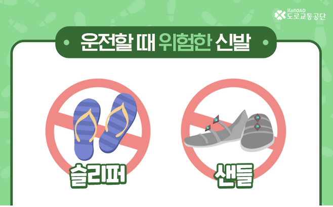 맨발: 페달을 밟는 힘이 분산되고, 위급 상황 시 최대 제동력을 발휘하기 어렵습니다. 땀 때문에 발이 미끄러질 위험도 있습니다.