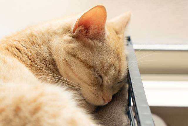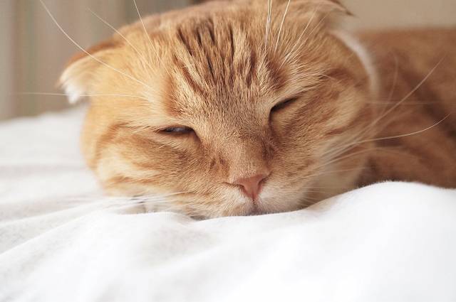 얕은 잠을 잘 때 고양이는 작은 인기척에도 일어나며, 누워 쉬고 있어도 눈을 가늘게 뜨고 주변을 살피는 행동을 보입니다.