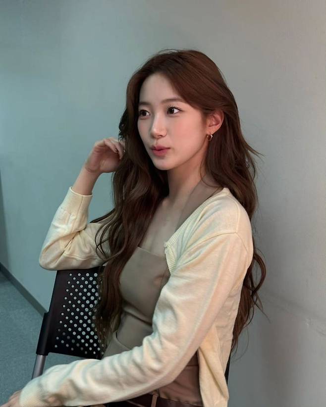 헤어스타일은 굵은 웨이브가 살아있는 롱 헤어로, 얼굴 윤곽을 자연스럽게 감싸며 부드러운 인상을 더했다. 여기에 카즈하 특유의 맑고 단정한 분위기가 어우러져 차분한 매력을 극대화했다. 배경은 회색 벽과 블랙 체어로 미니멀하게 구성돼, 그녀의 착장을 더욱 돋보이게 만들었다.