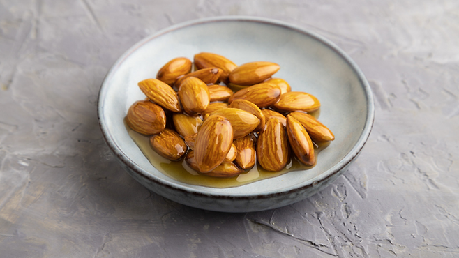 딱딱한 상태의 견과류는 충분히 씹지 않으면 소화 부담으로 이어질 수 있는데, 불린 아몬드는 이러한 문제를 줄이는 데 도움이 된다.