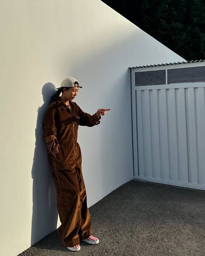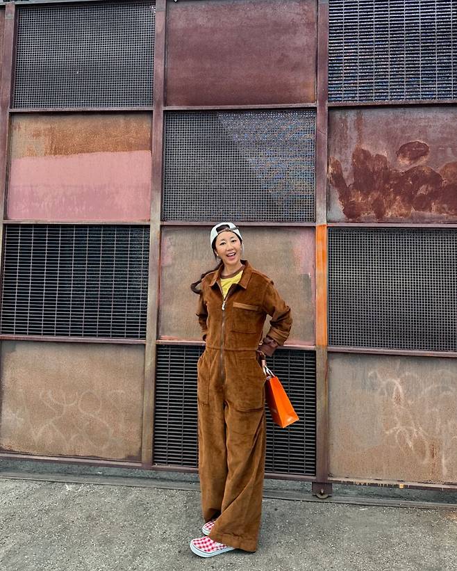 공개 된 사진 속 전미라는 노란색의 티를 이너로 입고 브라운 컬러의 코듀로이 점프수트를 입어 귀여운 캐주얼 스타일링을 선보였다. 체크 무늬의 빨간 슬립온을 신고 화이트 컬러의 모자를 뒤집어 써서 장꾸미를 자랑했다.