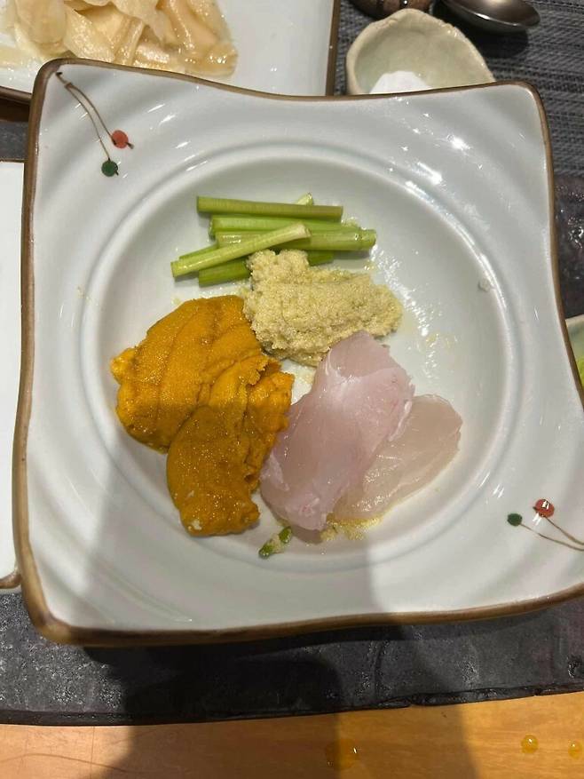 메뉴는 오마카세 하나있으며 정말 아무것도 정해진것 없이 사장님 마음대로 음식을 내어주십니다. 이번에 회는 주로 민어가 많았고 숙성을 잘하셔서 식감과 맛이 좋았습니다.
