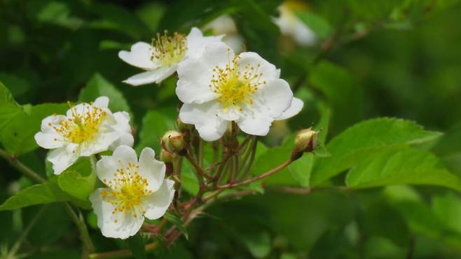 흔히 들길이나 숲 가장자리에서 만날 수 있는 찔레는 장미과에 속한 낙엽 관목으로, 5월 말에서 6월 사이 꽃을 피우며 햇빛이 잘 드는 산비탈이나 계곡 주변에서 바람과 어우러진다.