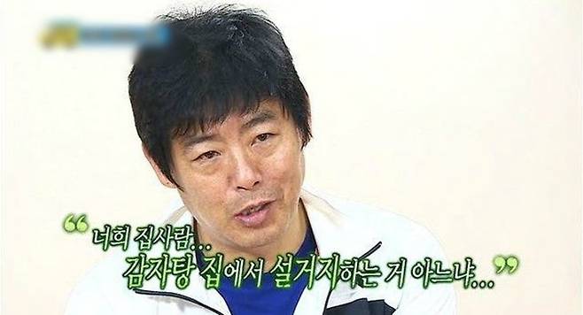 신혼 초 성동일의 누나는 성동일에게 예능이라도 출연하라고 했지만 성동일은 배우 자존심에 거절했고 이에 누나는 성동일 아내가 감자탕 집에서 일하고 있다는 사실을 알렸습니다. 성동일의 아내는 이미 아침방송에 출연해 얼굴이 알려진 바람에 배우 남편에게 피해가 갈까 봐 식당 주방에서 설거지하는 일을 하고 있었던 것이지요. 이후 성동일은 자존심보다는 가족을 위해 일했습니다.