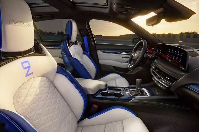 CT5-V 블랙윙 스페셜 에디션은 6.2리터 V8 슈퍼차저 엔진으로 최고출력 668마력, 0-100km/h 가속 시간 3.6초를 기록합니다.
