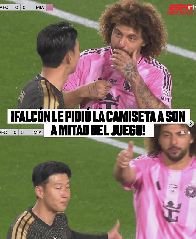 보도 내용에 따르면 인터 마이애미 수비수 팔콘은 경기 도중 손흥민에게 다가가 유니폼 교환을 요청하는 듯한 제스처를 취했다.