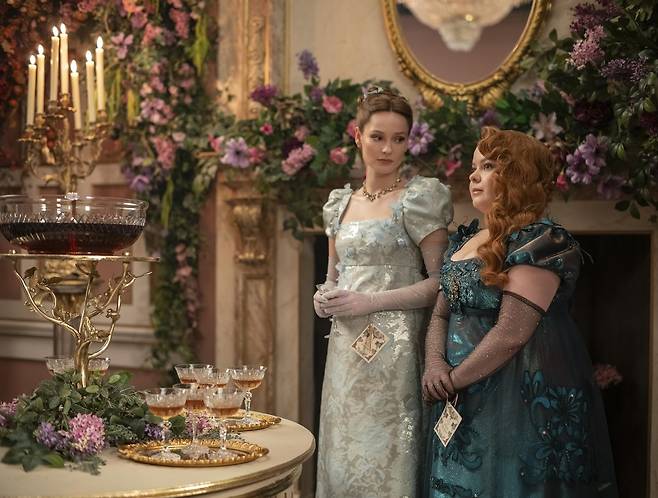 '브리저튼' 시즌3를 이끄는 두 인물 페넬로페(왼쪽)과 브리저튼의 딸 프란체스카의 모습. 사진제공=넷플릭스