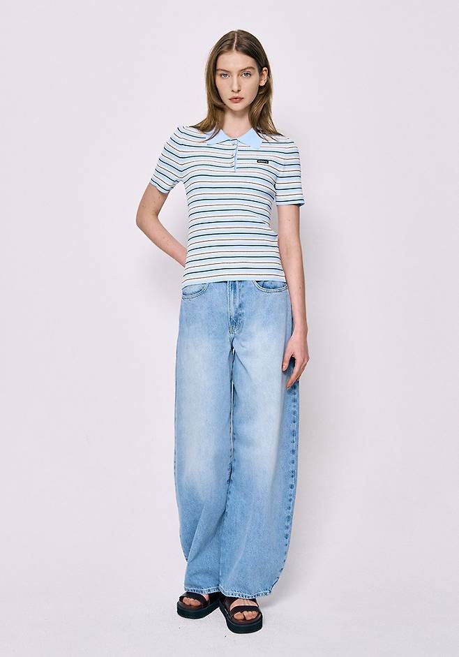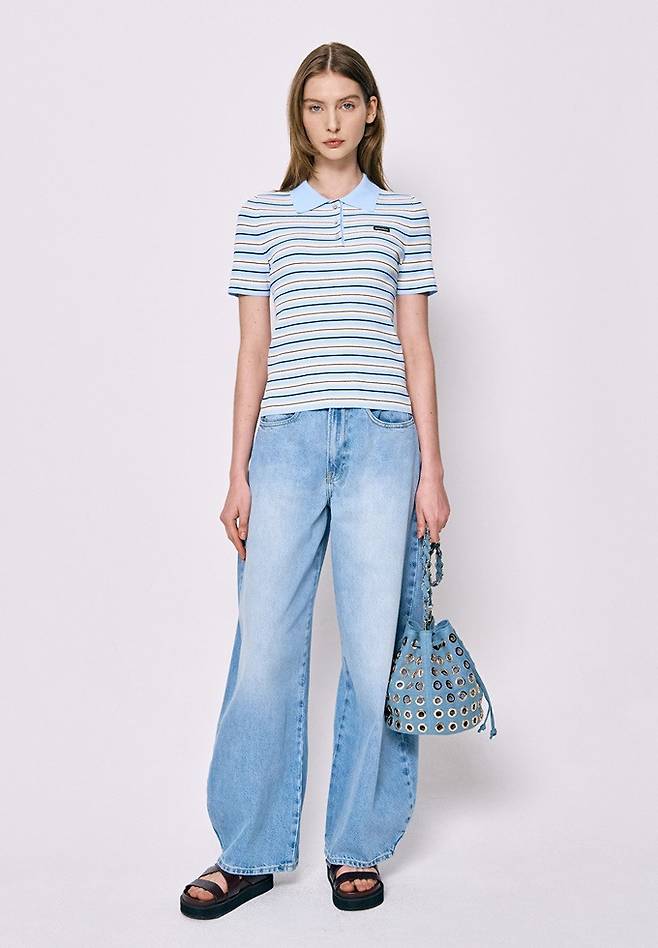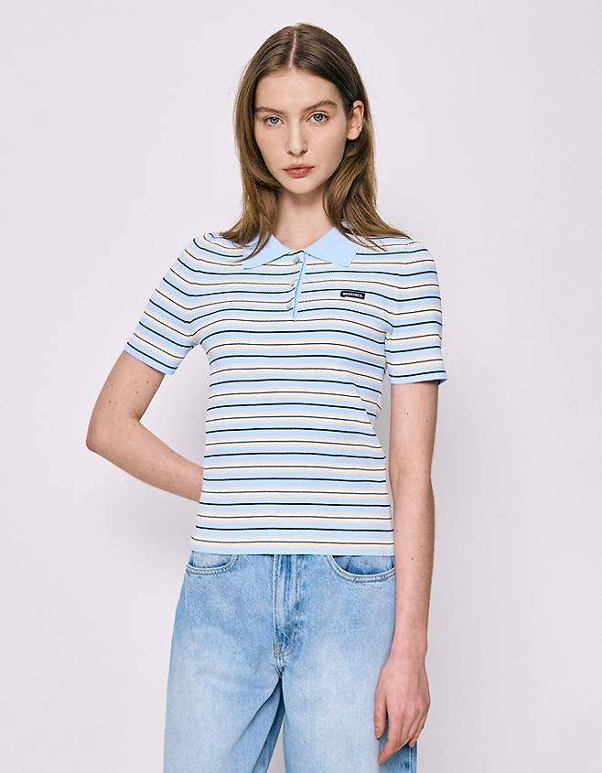 프렌치 컨템포러리 브랜드 '베르니스(BERENICE)' 스트라이프 반팔 니트 셔츠룩 '인기폭발'