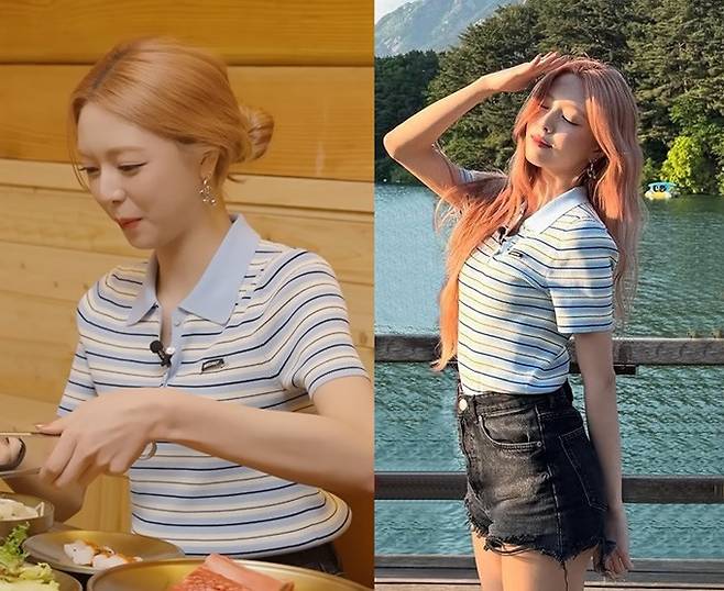 유나가 착용한 스트라이프 반팔 셔츠는 프렌치 컨템포러리 브랜드 '베르니스(BERENICE)' 제품으로 알려졌다.