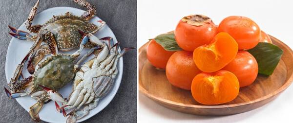 뷔페 과일 코너에 ‘게장을 먹은 손님은 감을 먹지 말라’는 경고문이 붙어있는 것을 종종 볼 수 있다. 꽃게와 감은 대표적인 상극 음식이다. 감의 떫은맛을 내는 탄닌산이 꽃게와 만나면 위험하다. 꽃게는 고단백 식품으로 식중독균의 번식이 아주 빠른 편이다. 이런 꽃게에 들어있는 비브리오균과 감에 함유된 탄닌산이 만나면 균의 번식을 가속시키기 때문에 식중독에 걸릴 위험이 높아 같이 먹지 않는 것이 좋다.