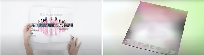 첫 번째는 바로, 잡지를 소재로 활용한 점!📸 멤버 쯔위가 잡지를 펼치자 안으로 줌인이 되는데요, 이후 자연스럽게 시작되는 노래와 함께 셀럽의 이미지를 연출하여 공통된 키워드인 ‘당당한 모습’에 대한 이해를 돕고 있습니다.