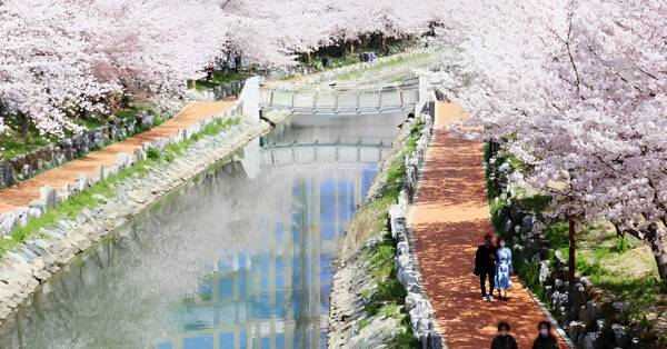 특히 길게 뻗어 있는 산책로가 걷는 내내 벚꽃잎이 바람에 흩날리고 벚꽃이 물결처럼 피어나는 장관을 감상할 수 있습니다.