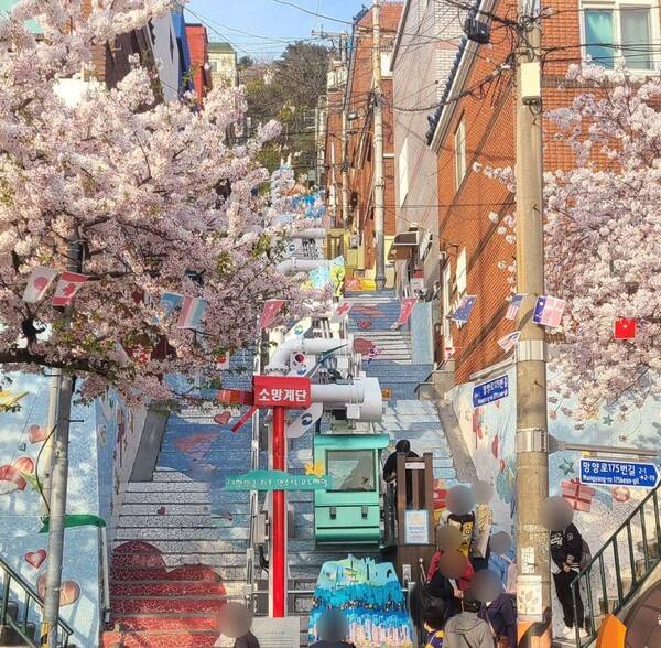 마을 내 192개의 계단으로 이루어진 ‘소망계단’은 소원을 빌면 이루어진다는 소문이 있어 봄 산뜻한 소망을 담아 오르시면 좋고, 만약 가파른 언덕길이 부담스럽다면 마을을 연결하는 모노레일을 이용해보는 것도 좋은 방법입니다.