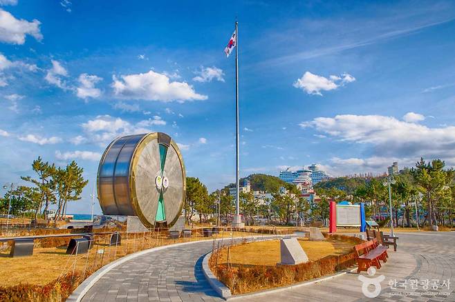 정동진 모래시계공원은 동해 바다와 소나무 숲, 그리고 정동진 마을을 배경으로 아담하게 조성된 공간입니다. 공원 중앙에 자리한 대형 모래시계는 1년이라는 시간을 모두 흘려보낸 뒤, 매년 1월 1일 0시에 반바퀴를 돌려 새로운 시간을 시작합니다.