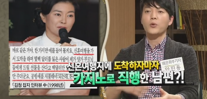충격적인 소식을 전한 김청은 파경 직후 인터뷰에서 신혼여행지에 도착하자마자 남편이 카지노로 직행해 도박을 시작했다고 전했습니다. 이어 "양가 부모님 드릴 선물을 산다고 백 달러만 달라고 해도 안 주더라"라며 황당했던 심경을 고백했지요. 게다가 12살 연상의 남편은 알고 보니 이혼 경력까지 속인 상황이었고 결국 신뢰를 잃은 김청은 결혼 3일 만에 파경이라는 극단적 결정을 할 수밖에 없었습니다.