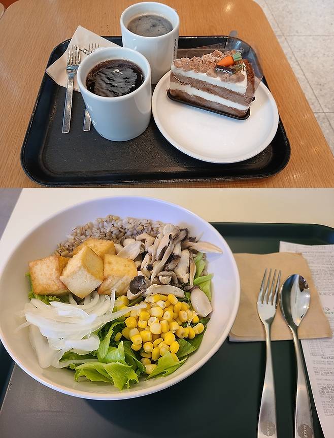 | ▲ 다이어트 이전 즐겨 먹었던 케이크(맨 위), 본격 다이어트 돌입 후엔 포케 등 야채 위주 식단에 돌입했다. |