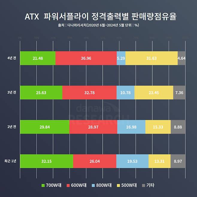 파워서플라이 정격 출력별 판매량 점유율 1위 제품