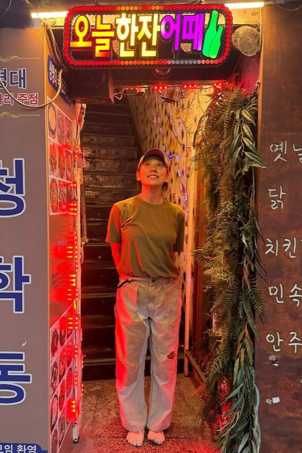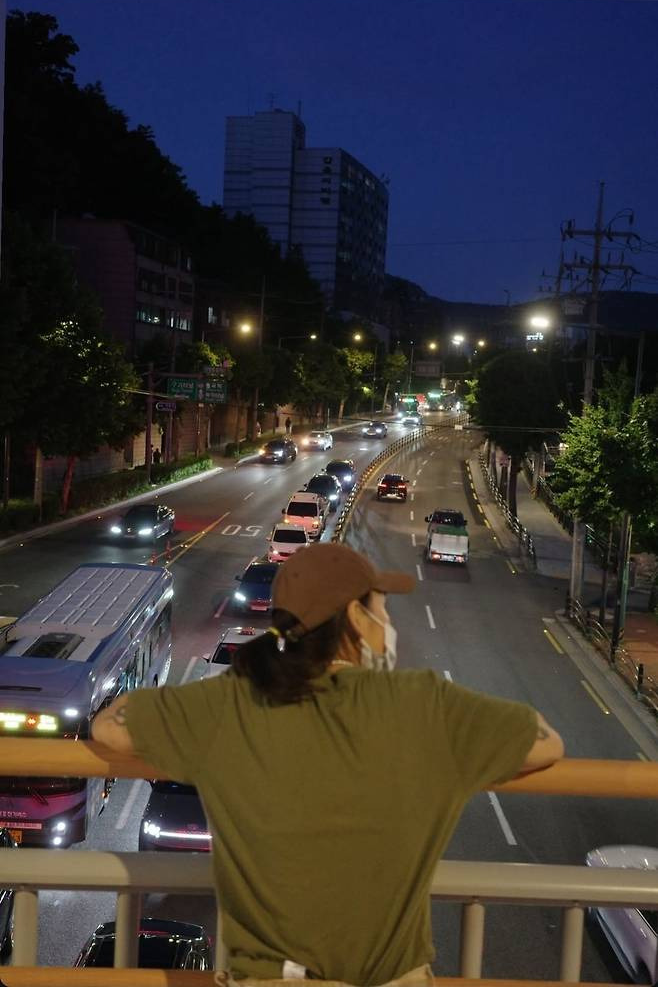 특히 네온사인 아래 신발을 신지 않고 맨발로 선 모습은 마치 영화의 한 장면처럼 감각적이었으며, 한밤중 육교 위에 홀로 선 모습에서도 도시적이면서도 자유로운 감성이 고스란히 담겼습니다.
