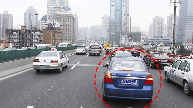 차선을 바꾸기 전, 사이드미러만 보는 것은 불충분하다.
