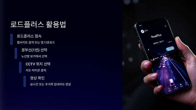 로드플러스 웹사이트나 앱을 통해 경부고속도로의 CCTV 영상을 보는 방법은 간단합니다.
