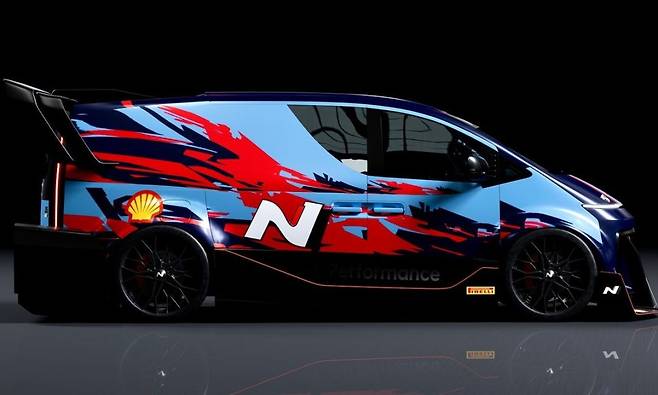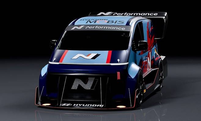 후면부 역시 남다릅니다. 차폭을 넘는 대형 윙이 측면을 감싸고 있으며, 테일램프 디자인도 일반 스타리아와는 확연히 다른 모습입니다. 특히 범퍼 하단에는 슈퍼카급 디퓨저가 장착되어 있으며, 마치 트랙 위에서 달릴 준비가 된 모터스포츠 차량처럼 보입니다. 전체적으로 N 퍼포먼스 블루 컬러를 배경으로 모터스포츠 데칼이 적용되어, 한눈에 N 라인임을 알아볼 수 있는 디자인입니다.