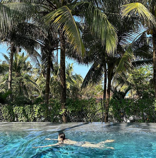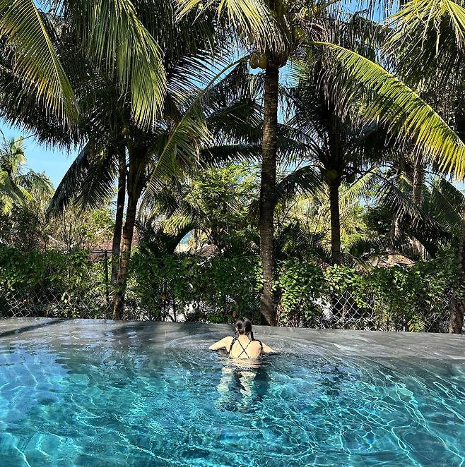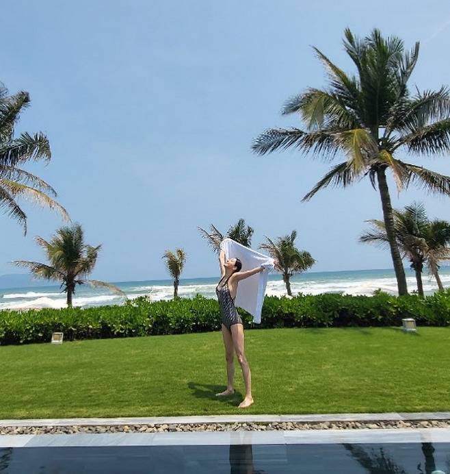 176cm 큰 키의 이다희가 선택한 바캉스룩은 원피스 수영복이다.