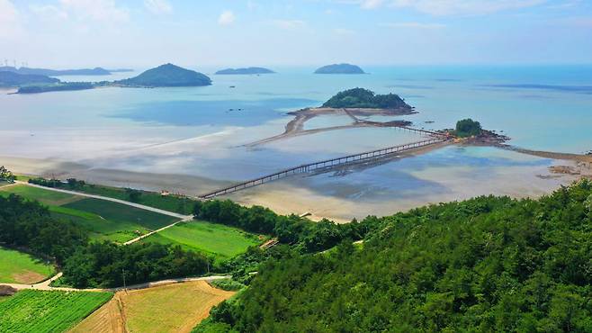 물이 빠지면 세계 5대 갯벌로 꼽히는 서남해 갯벌을 만날 수 있고, 물이 차오르면 끝없이 펼쳐진 바다 위를 걷는 듯한 장관이 펼쳐집니다.