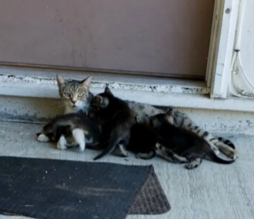 그러던 어느 날, 믿기 어려운 일이 벌어졌습니다. 그토록 경계심이 강했던 고양이가 스스로 구조대 자원봉사자의 집 앞을 찾아온 것인데요. 그것도 혼자가 아닌, 다섯 마리의 아기 고양이들과 함께였습니다.