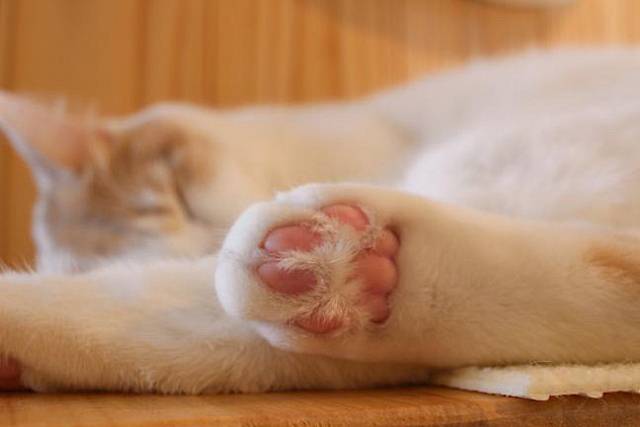 고양이 육구는 개나 곰에 비해 얇으며 땀샘이 발달했습니다. 그래서 촉촉하고 말랑말랑합니다. 수 많은 냥덕 집사가 배출된 배경에는 이 부드럽고 말랑한 육구가 있죠.