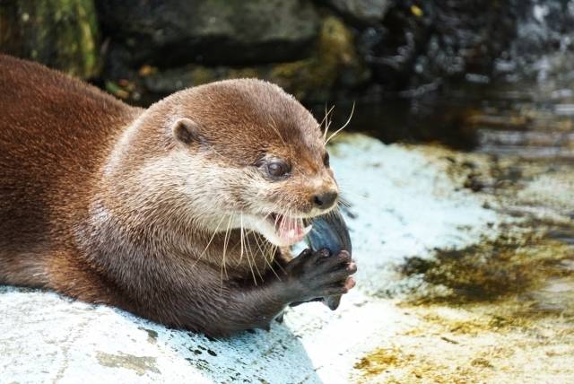 물건을 잡는 데 특화된 육구 동물로는 수달이 있습니다. 수달은 인간처럼 발톱이 있고 발 전체가 부드러워 고양이와 대등하거나 혹은 그 이상으로 섬세한 동작을 할 수 있습니다.