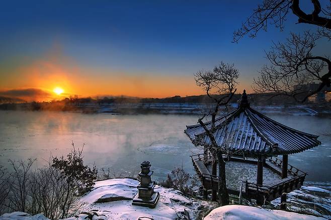 신륵사 건너편에 있는 영월루는 남한강의 푸른 물결과 신륵사의 전경을 한눈에 담을 수 있는 여주 가볼만한 곳중 하나인데요. 누각에 올라서면, 남한강의 흐름과 신륵사의 고즈넉한 풍경이 어우러져 마치 한 폭의 그림 같은 장면을 감상할 수 있습니다.