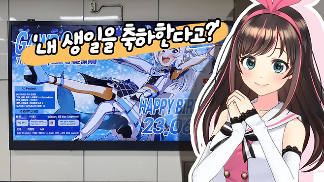 이건 서울의 한 지하철역사 안에 있는 광고판인데 자세히보니까 (응?) 가상 캐릭터의 생일을 축하하는 내용이다. 캐릭터를 향한 애정 어린 편지까지 정성스레 달아놓았다. 유튜브 댓글로 “요즘 지하철에 2D 캐릭터 생일축하 광고가 많아진 이유를 알아봐달라”는 의뢰가 들어와 취재했다.