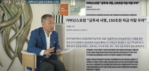 금투세란 주식·채권·펀드 등 금융상품 투자로 연간 일정 금액(주식 5000만원·기타 250만원)이 넘는 양도소득을 올린 투자자에게 20~25%의 세금을 매기는 제도다. 박 대표는 여러 채널을 통해 금투세 도입 반대 논리를 펴고 있다.