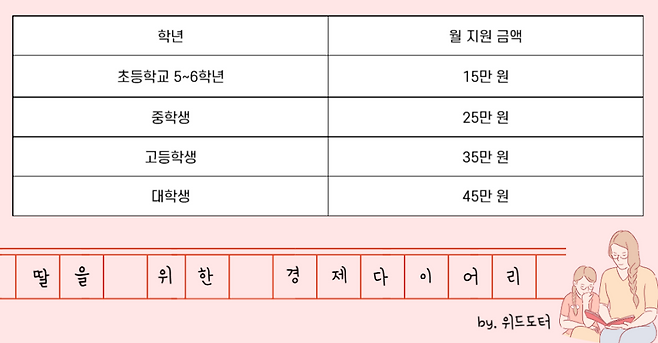 중학생: 월 25만 원