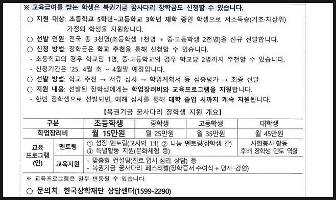 [2025년 복권기금 꿈사다리 장학금 지원대상 초등학생도 받을 수 있다는데]