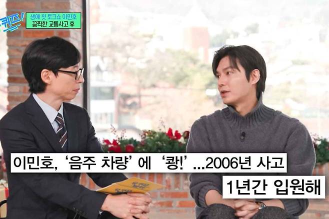 '꽃보다 남자', '상속자들' 등으로 인기를 얻은 배우 이민호가 25일 방송된 tvN 예능 '유퀴즈 온 더 블럭'에서 2006년에 겪은 교통사고와 그로 인한 공백기를 솔직하게 털어놨다.