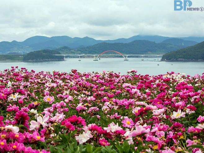 수천 송이의 작약이 일렁이는 이곳에서는 꽃과 함께 다도해의 풍경까지 한눈에 담긴다. 섬과 섬 사이로 바람이 불고, 그 바람 사이로 꽃잎이 날린다. 산이 아닌 해안가에서 작약을 마주하는 순간은 낯설지만 오히려 그 조합이 풍경을 특별하게 만든다.