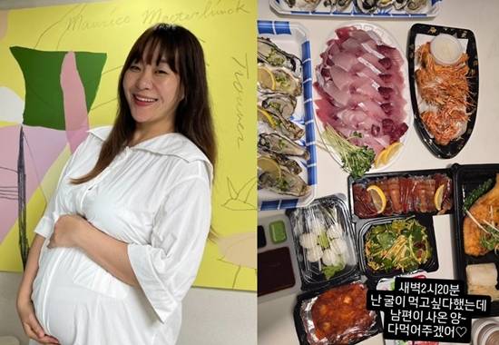 사진에는 임신한 정주리를 위해 남편이 사 온 회와 굴을 비롯 푸짐한 한 상 차림이 담겼다. 특히 정주리 남편은 새벽 시간임에도 개의치 않고 정주리가 먹고 싶은 음식들을 한아름 사들고 와 훈훈함을 선사한다.