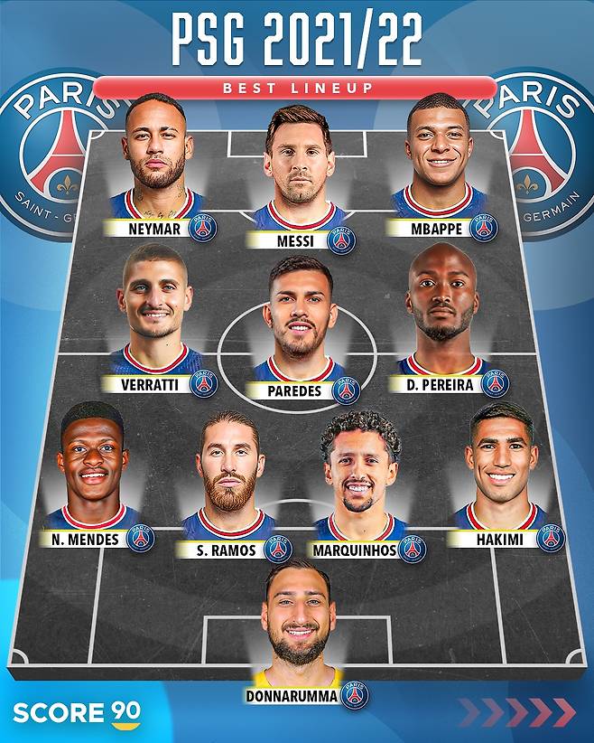 축구 컨텐츠 제작소 스코어90은 13일(한국시간) "어떤 버전의 PSG가 21세기 최고의 스쿼드인가?"라며 이번 시즌을 포함한 총 4개 시즌의 스쿼드를 소개했다.