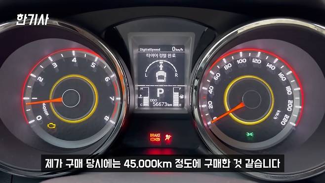 현재 총 주행거리는 어떻게 되나요? 약 56,700 정도 운행하고 있고요. 구매 당시에는 45,000 정도에 구매한 것 같습니다.